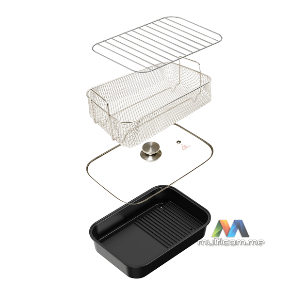 Upravljanje je jednostavno putem digitalne kontrole sa dvostrukim LED ekranom, dok vam ugrađeni prozor omogućava da pratite proces kuvanja bez otvaranja uređaja. Veliki kapacitet od 6 litara pruža dovoljno prostora za obroke za cijelu porodicu, a tajmer do 60 minuta sa automatskim isključivanjem i zvučnim signalom obezbjeđuje dodatnu sigurnost i praktičnost.