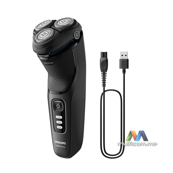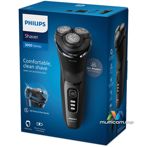 Philips 3000 series S3244/12 rotacioni brijač │ 5D pivot i flex glave │ PowerCut samo-oštreće oštrice │ Mokro i suvo brijanje │ 60 minuta bežičnog brijanja │ Anti-korozivni sistem brijanja │ Pop-up trimer za brkove i zaliske