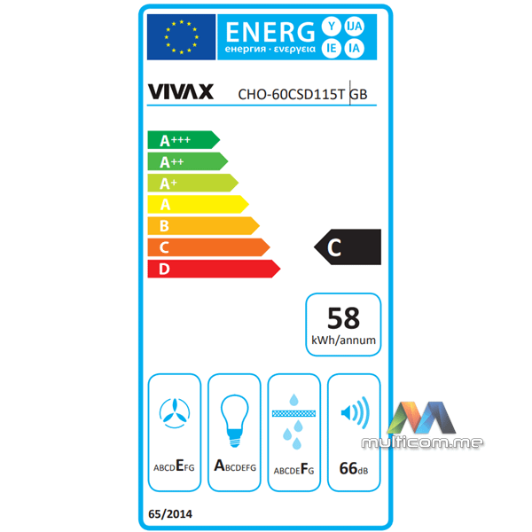 Vrhunska tehnologija kuhinjske nape VIVAX CHO-60CSD115T GB održava buku i potrošnju energije na niskom nivou od samo 47dB pri najnižoj brzini ili 66dB pri najvećoj brzini sa energetskom klasom efikasnosti C. Elegantna spoljašnjost od kaljenog stakla dodaje poseban šarm izgledu ove nape. Hidraulični oslonac koji drži stakleni poklopac tokom održavanja filtera i čišćenja nape svakako doprinosi jednostavnosti korištenja i održavanja.