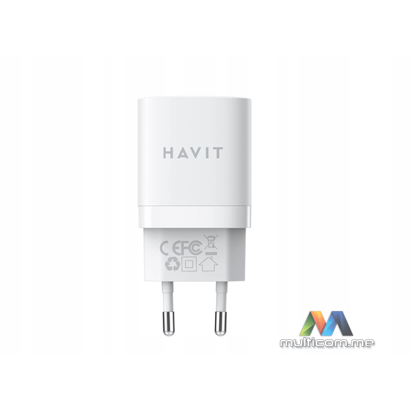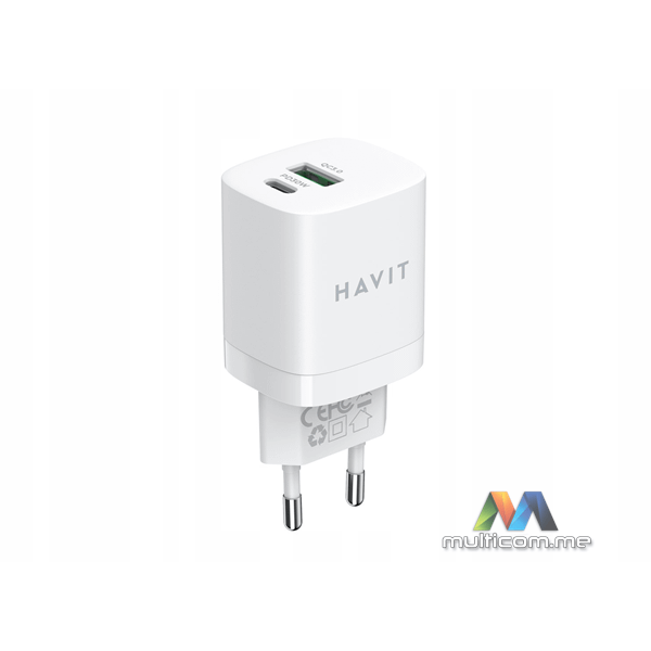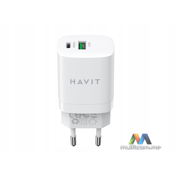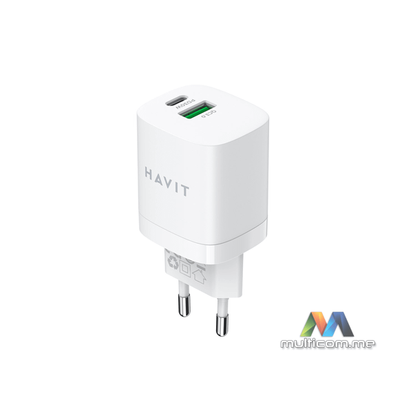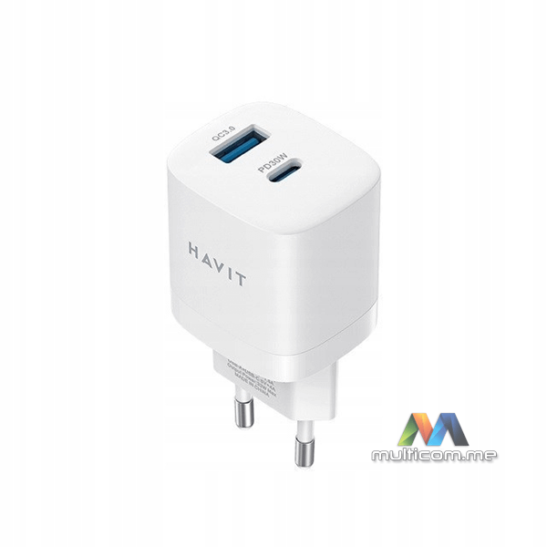 HAVIT UC30 EU USB-A USB-C punjač │ USB-A i USB-C portovi │ Snaga 30W │ Brzo punjenje QC3.0 │ GaN tehnologija