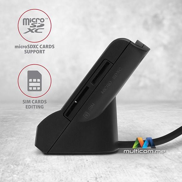 Axagon CRE-SM2 USB Smart CR, Podrzani utori USB, Sucelje USB 2.0, USB 2.0 CCID protocol; podrzava ATM / CAC / ID / IC / SIS kartice, microSD; SD i SIM card reader; duzina kabla - 1.3m
