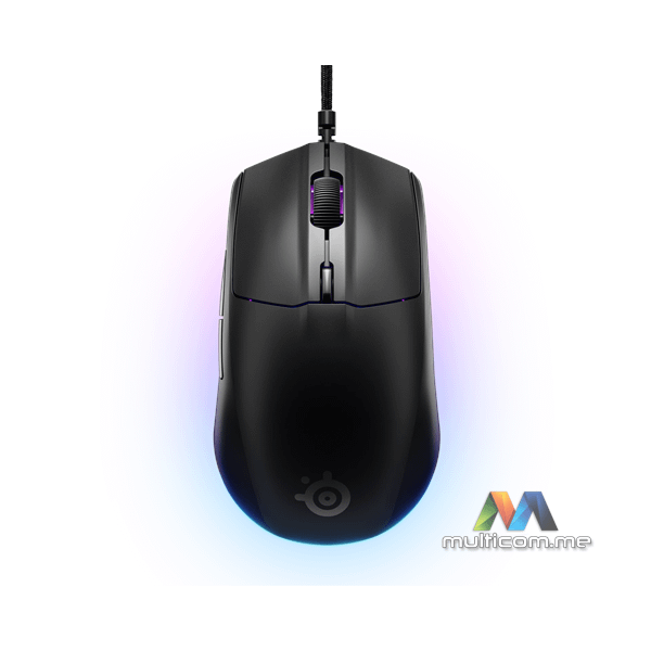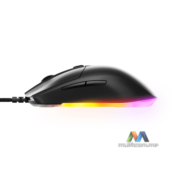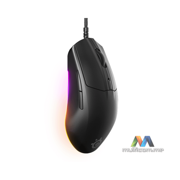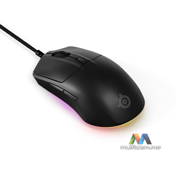 SteelSeries Rival 3 Gen 2 Black gaming miš │ 1.35ms kašnjenje klika │ TrueMove Core optički senzor (8.5K DPI) │ 3-zone RGB osvjetljenje │ Super Mesh paracord kabl │ 77g lagana konstrukcija
