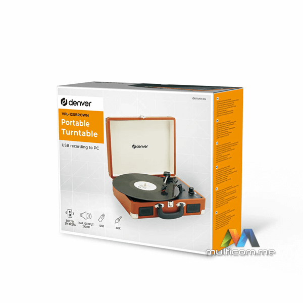 DENVER VPL-120BR gramofon │ Retro dizajn │ Višestruke brzine reprodukcije │ Prijenosni dizajn kofera │ Ugrađeni zvučnici │ Phono izlaz │ Auto-stop ručica