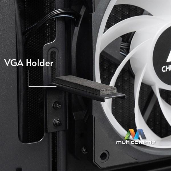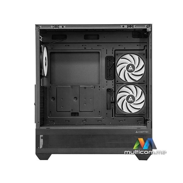 CHIEFTEC VISTA ima kaljeno staklo na lijevoj i prednjoj strani, sa rasporedom koji se proteže od vrha do dna. Ovaj dizajn omogućava čist unutrašnji izgled i neometan protok vazduha.