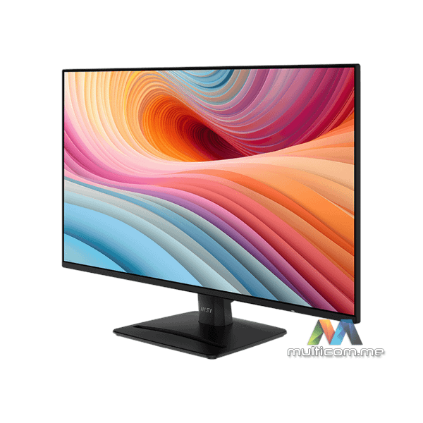 MSI PRO MP271A E2 monitor │ Veličina: 27" │ Rezolucija: 1920x1080 (FHD) │ Osvježavanje: 120Hz │ Odziv: 1ms (MPRT) / 4ms (GtG) │ Panel: IPS │ HDR: HDR Ready │ Portovi: HDMI 1.4b, DisplayPort 1.2a, VGA │ Zvučnici: 2x 2W │ VESA: 100x100 mm