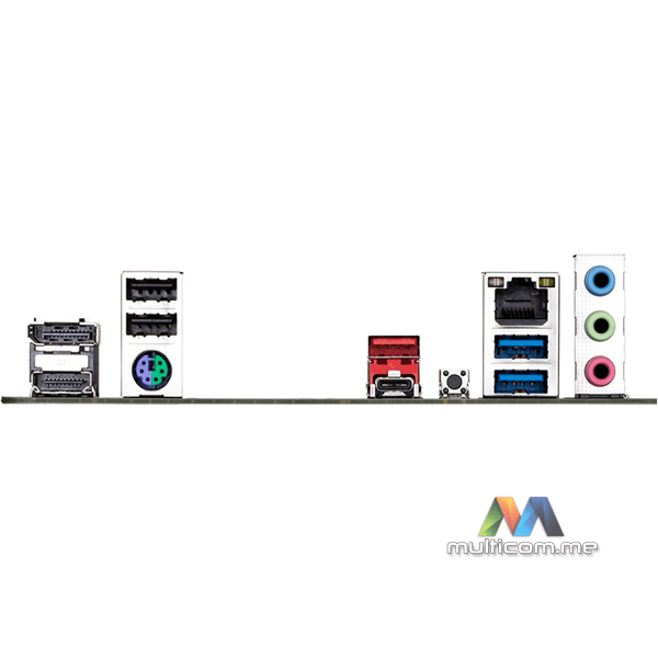 | Konektori na Zadnjem Panelu | 1 x PS/2 port za tastaturu/miš; 1 x USB Type-C® port, sa USB 3.2 Gen 1 podrškom; 1 x USB 3.2 Gen 2 Type-A port (crveni); 2 x USB 3.2 Gen 1 portovi; 2 x USB 2.0/1.1 portovi; 1 x HDMI port; 1 x DisplayPort; 1 x Q-Flash Plus dugme; 1 x RJ-45 port; 3 x audio priključka |