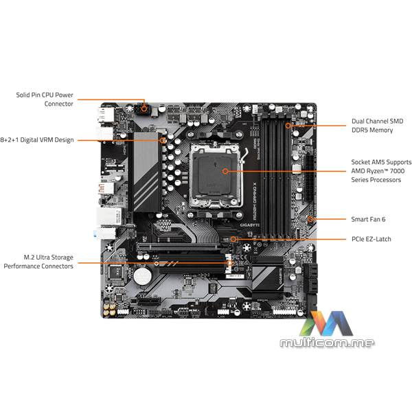 AMD Socket AM5:Podržava AMD Ryzen™ 7000 / Ryzen™ 8000 / Ryzen™ 9000 serije procesora