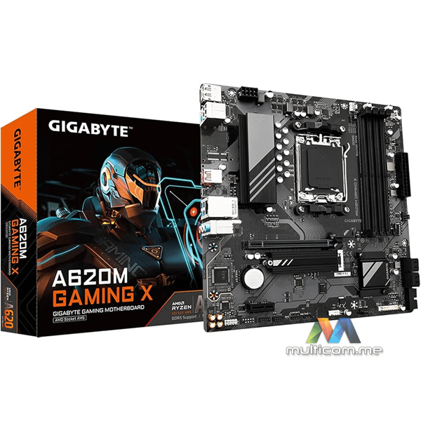 Gigabyte A620M GAMING X matična ploča │ Podrška za AMD Ryzen 7000/8000/9000 serije procesora (AM5 socket) │ 4x DDR5 sa AMD EXPO & Intel XMP podrškom │ PCIe 4.0 x4 M.2 konektor │ Smart Fan 6