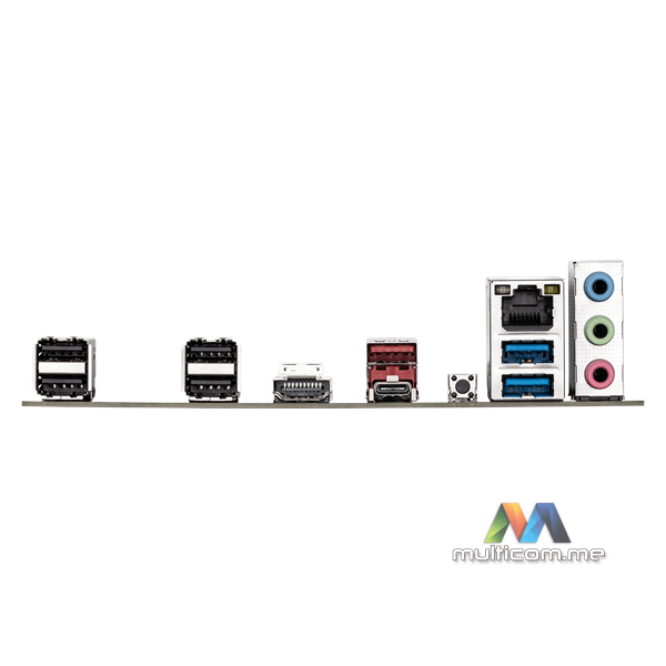 | Konektori na Zadnjoj Ploči | 4 x USB 2.0/1.1 porta 1 x HDMI port (Napomena) 1 x USB 3.2 Gen 2 Type-A (Napomena)/USB 3.2 Gen 1 port (crveni) 1 x USB Type-C® port, sa podrškom za USB 3.2 Gen 1 1 x Q-Flash Plus dugme 1 x RJ-45 port 2 x USB 3.2 Gen 1 porta 3 x audio priključka (Napomena) Stvarna podrška može varirati u zavisnosti od procesora. |