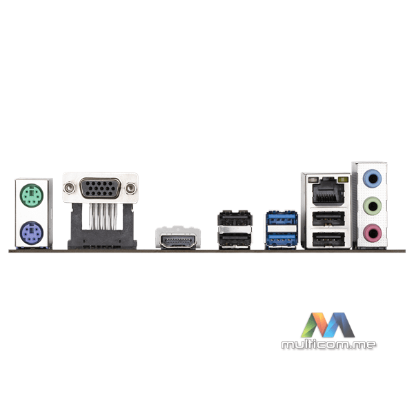 | Konektori na Zadnjem Panelu | 1 x PS/2 port za tastaturu. 1 x PS/2 port za miša. 1 x D-Sub port. 1 x HDMI port. 2 x USB 3.2 Gen 1 porta. 4 x USB 2.0/1.1 portova. 1 x RJ-45 port. 3 x audio priključka. |