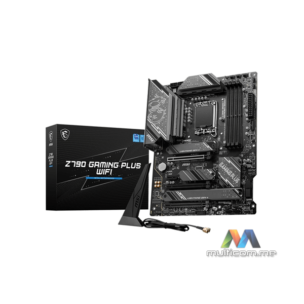 MSI Z790 GAMING PLUS WIFI matična ploča - Socket: Intel LGA 1700 - Memorijski slotovi: 4xDDR5 (MAX: 192 GB do 7200 MHz) - Podržani interfejsi uređaja za skladištenje: M.2, PCI Express - Wi-Fi 6 (802.11ax) - Bluetooth 5.3 - Format: ATX - 4711377134712