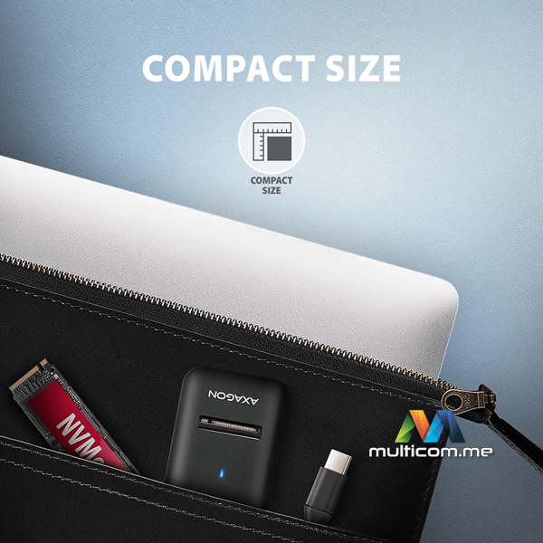 Zahvaljujući malim dimenzijama, može biti uvijek pri ruci. Adapter ne sprečava odvođenje toplote sa diska, što produžava njegov vijek trajanja i takođe sprečava usporavanje brzine diska, tzv. „Thermal Throttling“. Ovaj USB-C na M.2 adapter za diskove može se koristiti sa računarima i laptopovima, kao i mobilnim telefonima i tabletima.