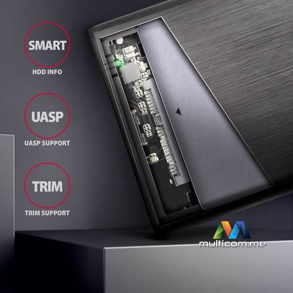 Axagon EE25-A6M eksterno 2.5-inch HDD/SSD kućište │ Aluminijumsko kućište │ USB 3.2 Gen 1 interfejs │ Podrška za SATA 6G i UASP │ Kompatibilnost sa 2.5" HDD i SSD │ Podrška za TRIM funkciju i S.M.A.R.T.