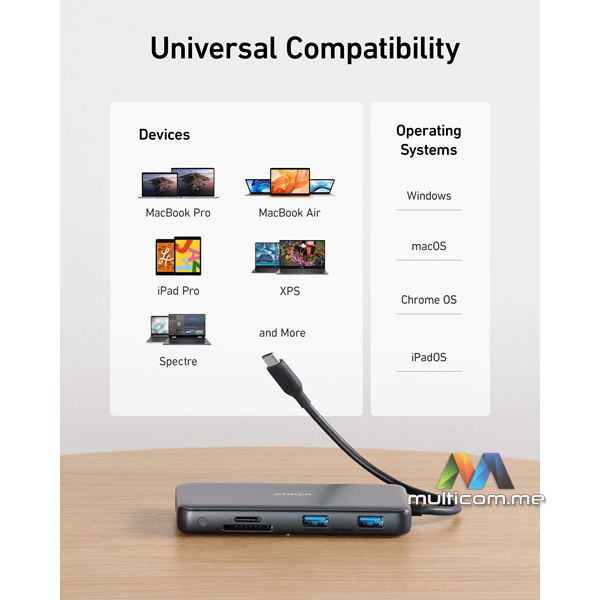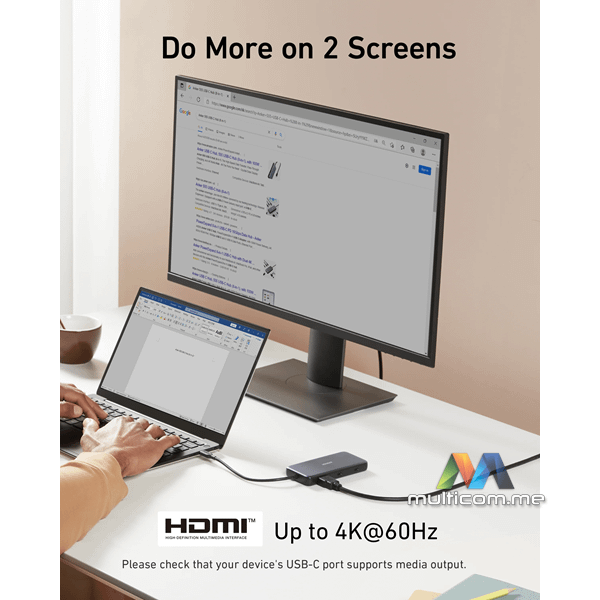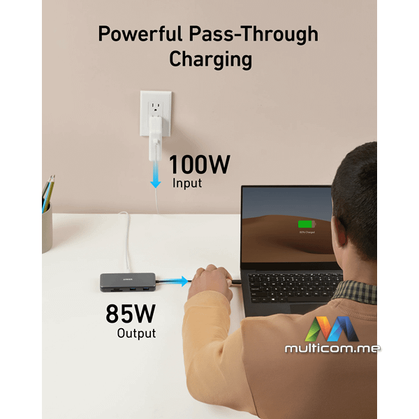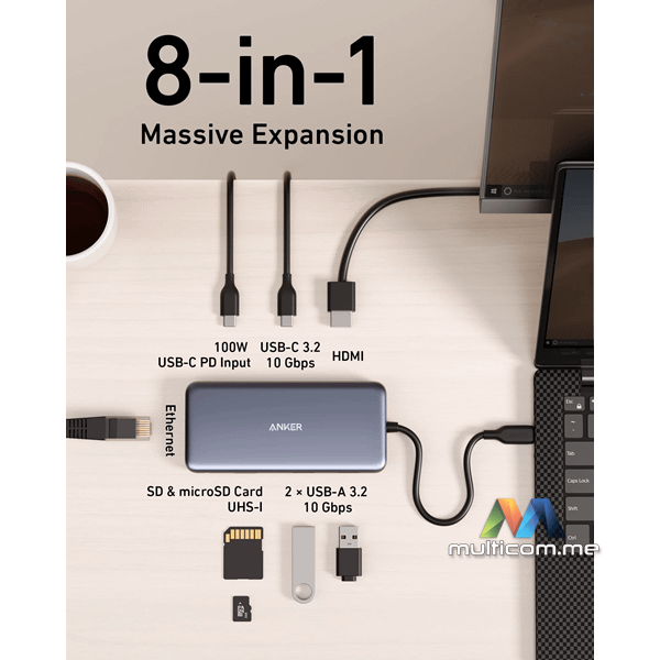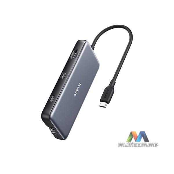 Anker 555 USB-C Hub (8-in-1) │ Brzi prenos podataka │ USB-C PD Input 100W │ USB-C 3.2 10 Gbps │ 4K HDMI priključak │ SD i microSD slotovi │ Ethernet priključak │ 2x USB-A 3.2 10Gbps