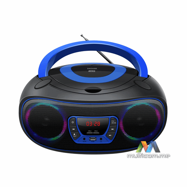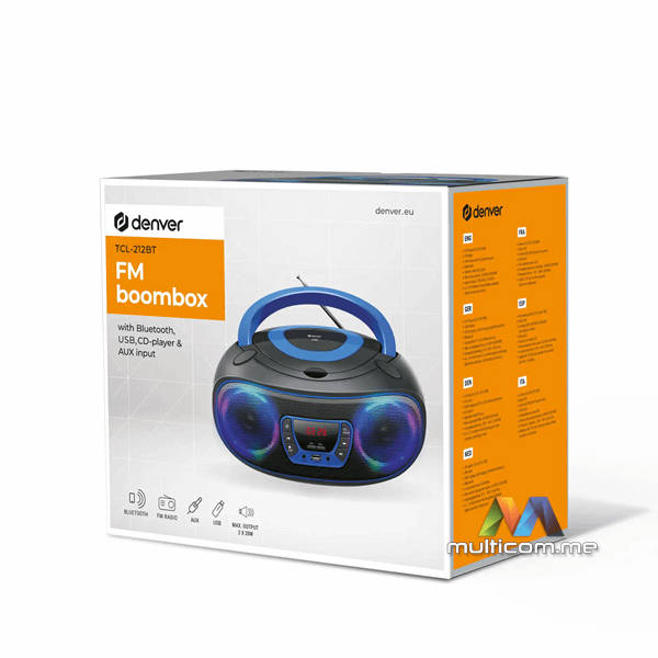 DENVER TCL-212BTBU bluetooth zvučnik sa CD player-om │ Bluetooth povezivanje │ CD plejer i MP3 reprodukcija │ USB i AUX ulazi │ Prenosiv dizajn sa baterijskim napajanjem │ Snaga 2 x 2W │ Ugrađeni FM radio