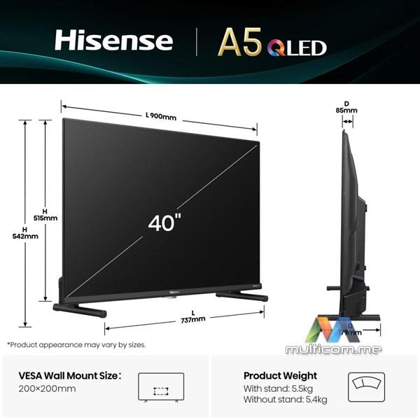 Hisense 40A5Q televizor │ 40-inch ekran │ QLED ekran │ Dolby Atmos │ FHD rezolucija │ VIDAA Smart TV