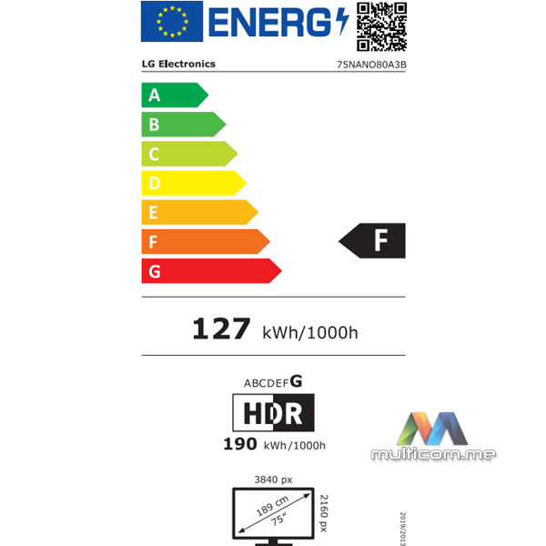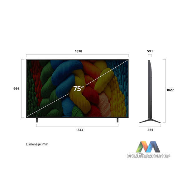 LG 75NANO80A3B smart TV pametni televizor │ Dijagonala 75" │ 4K ultra HD │ Nano cell panel │ WebOS 25 smart │ alpha 7 AI Processor 4K Gen8 │ Magic remote